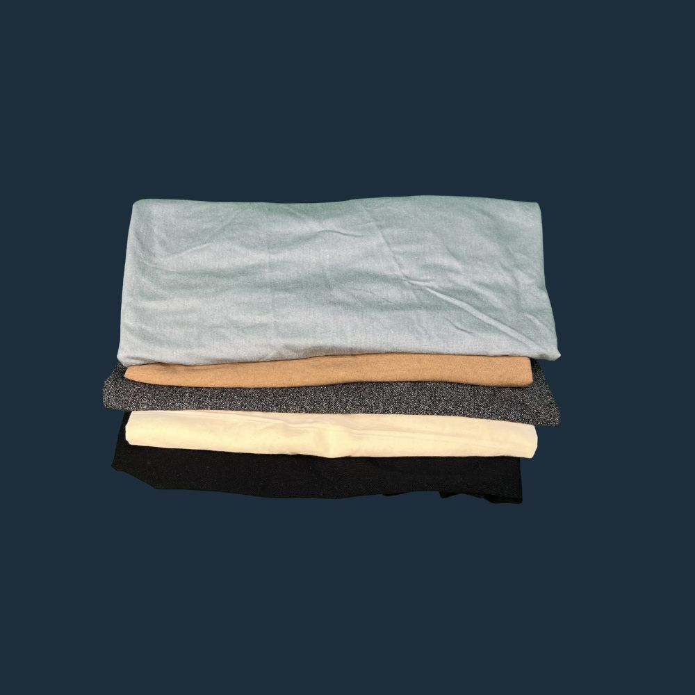 Malhas coloridas 100% algodão, sem costura, cortadas em tamanhos grandes, utilizadas como toalhas industriais. Indicadas para limpezas pesadas e manutenção, com ótima absorção e durabilidade.